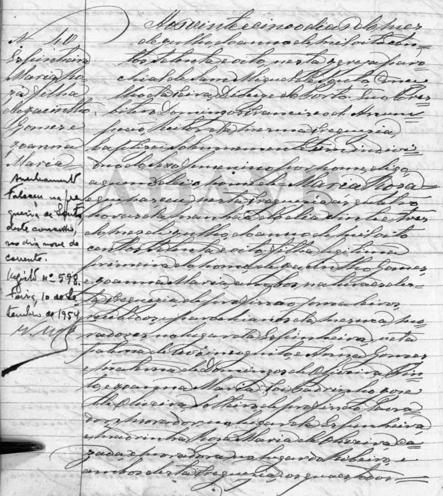 Rosa Maria de Jesus, filha legítima de Baltazar Coelho e Mariana de Oliveira, do Lugar do Morouço, freguesia de Lamas, neta paterna de Cosme Coelho e Catarina Pinheiro, do Lugar da Torre, a dita freguesia de Lamas, e neta materna de Clemente de Oliveira e Baptista Leite, do Lugar da Venda Nova, freguesia de Lourosa, todos da comarca da Feira, bispado do Porto.”